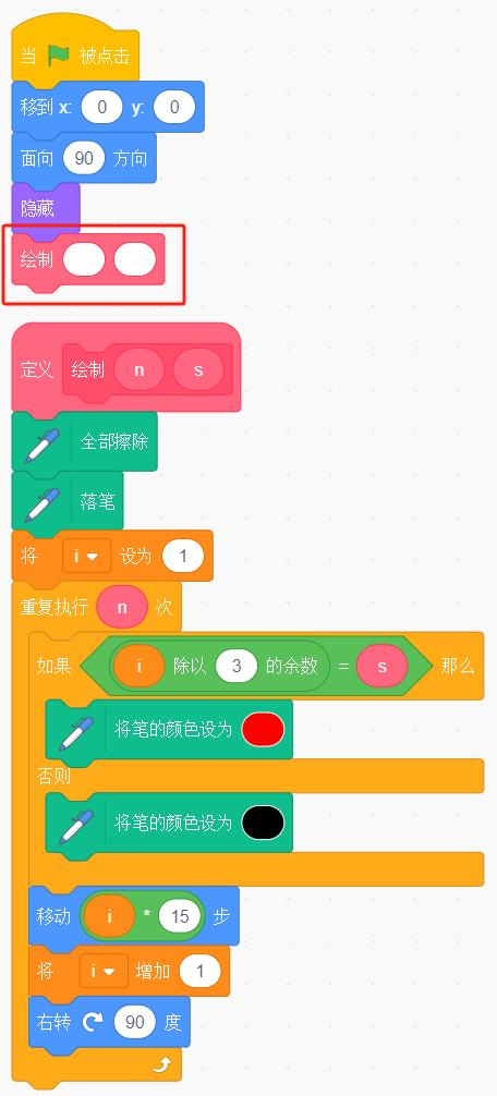 默认小猫角色,执行下列程序,红框处依次填入 12 和 2,判断是否能够绘制出如下所示图形。