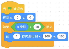 小狗的Scratch代码如图所示,题目描述点击绿旗后小狗会滑行到(100,100)的位置。<img src="https://img.julecn.com/tk/nvw/qsojhtionwcvlxqj.png" alt="">