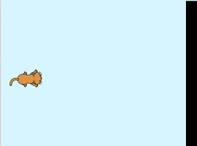 (2)点击绿旗后,按下空格键,小猫水平向右不停地往前游,不按空格键,小猫就一直后退(注意:小猫后退,头也朝向右);