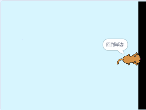 (3)小猫游到岸边后,会发出“meow2”声音,然后说:“回到岸边!”2秒,不按空格键,小猫也不再后退。
