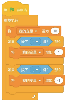 运行程序时,按下“向上”键一次,在按下的瞬间变量加1,之后变量很快变回10