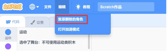 <p>Scratch不小心删除了一个角色,点击下图红框中的按钮可以复原该角色。</p><p><img src="https://img.julecn.com/tk/ekq/rwjzkvuqrbewxbwm.png" alt=""></p>