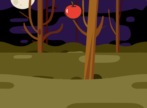 苹果从天空缓缓落下,掉落到舞台下边缘消失