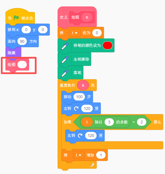 默认小猫角色执行程序绘制指定图形,红框处填写的数值是?