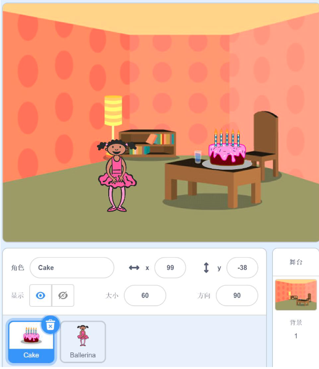 添加角色蛋糕(Cake)和芭蕾舞者(Ballerina);