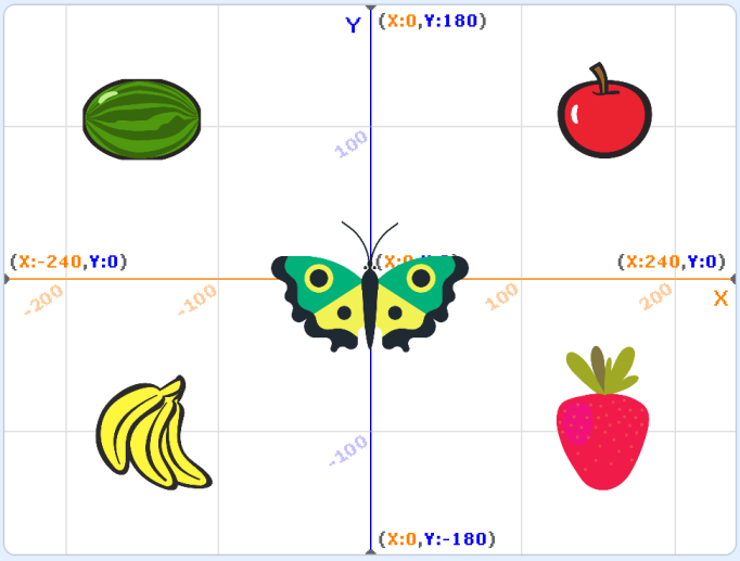 程序运行前蝴蝶在舞台中央,如下图所示: