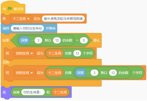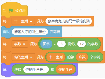 出生年份减3的差除以12的余数即为生肖编号,例如出生年份为2008,减3的差除以12的余数为1,生肖即为鼠;出生年份为2007,减3的差除以12的余数为0,生肖为猪。