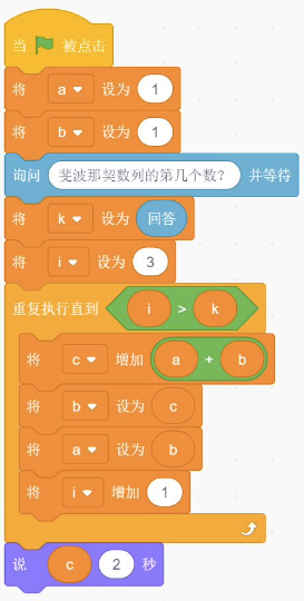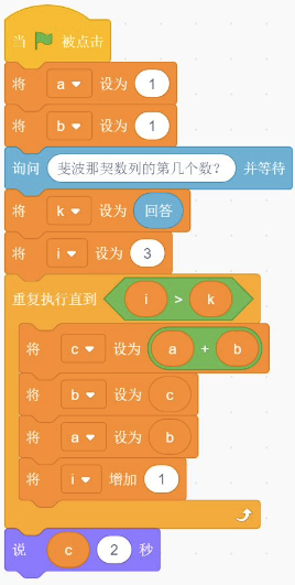 斐波那契数列是指这样的数列:数列的第一个和第二个数都为 1,接下来每个数都等于前面2个数之和。默认小猫角色。