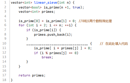 下述C++代码实现素数表的线性筛法,筛选出所有小于等于n的素数,则横线上应填的代码是( )。<img src="https://img.julecn.com/tk/sij/uhvpsrcnnohyfwlm.png" alt="">