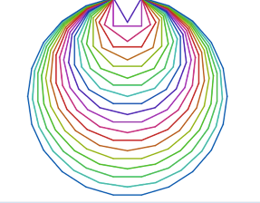 任务说明: 1、画笔初始位置(-25,180),粗细为2; 2、每个多边形的边长都是50; 3、每画一个多边形,画笔要改变颜色。
