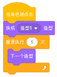 <p>角色一共有4个造型,执行下面程序后,显示哪个造型?</p><p><img src="https://img.julecn.com/tk/nye/nqlikgwducehiibh.png" alt="Scratch积木程序:当角色被点击→换成造型1→重复执行5次→下一个造型"></p>