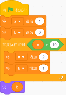 执行给定的Scratch脚本后,说出的变量b的值为?
