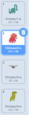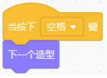 <p>Scratch角色当前造型为红色“三角龙”,通过按下空格键切换造型,相关造型列表与切换代码如下:</p><p><img src="https://img.julecn.com/tk/fwx/xjcflqmkozkdvmtt.png" alt="造型列表"><img src="https://img.julecn.com/tk/vfe/wojumpsjycxuaaxs.png" alt="切换代码块"></p>